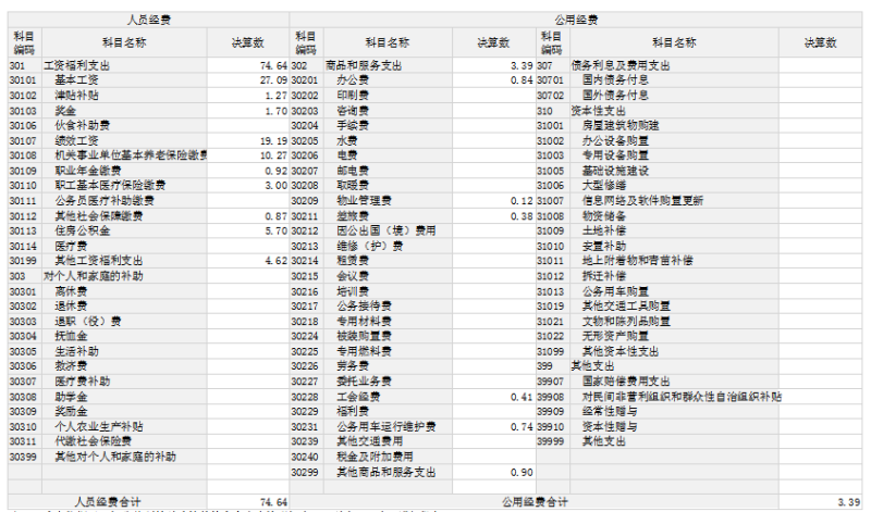 公用经费3.39万元,主要包括:办公费、物业管理费、差旅费、工会经费、公务用车运行维护费、其他商品和服务支出。