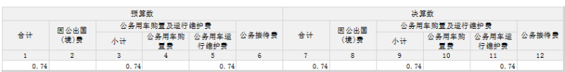 公务用车运行维护费支出0.74万元。